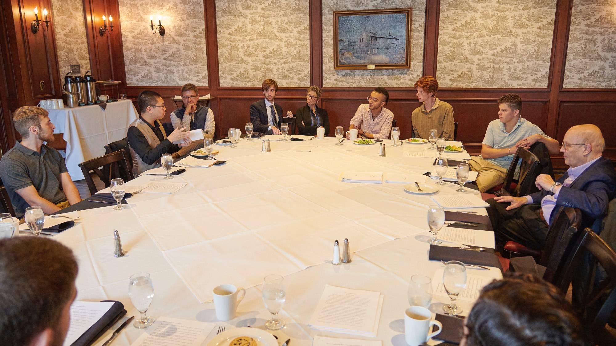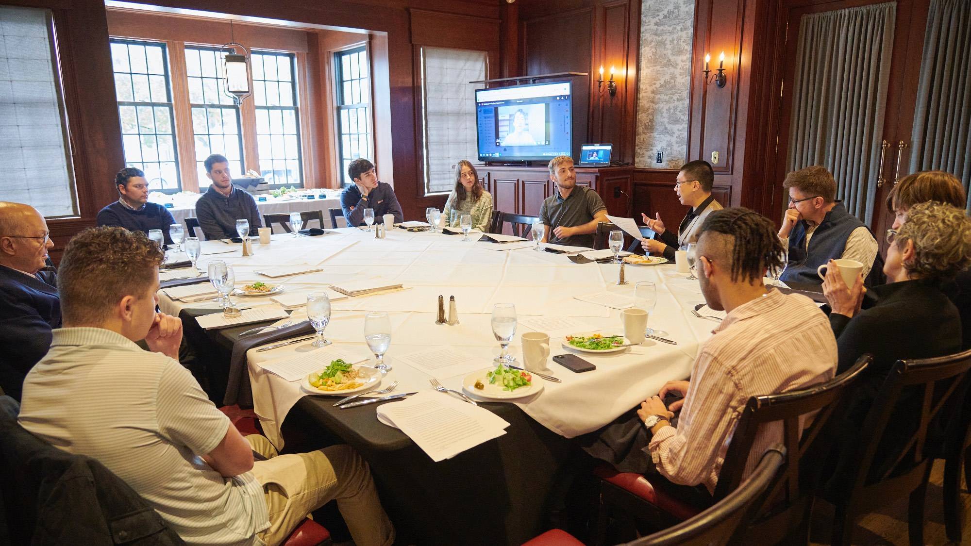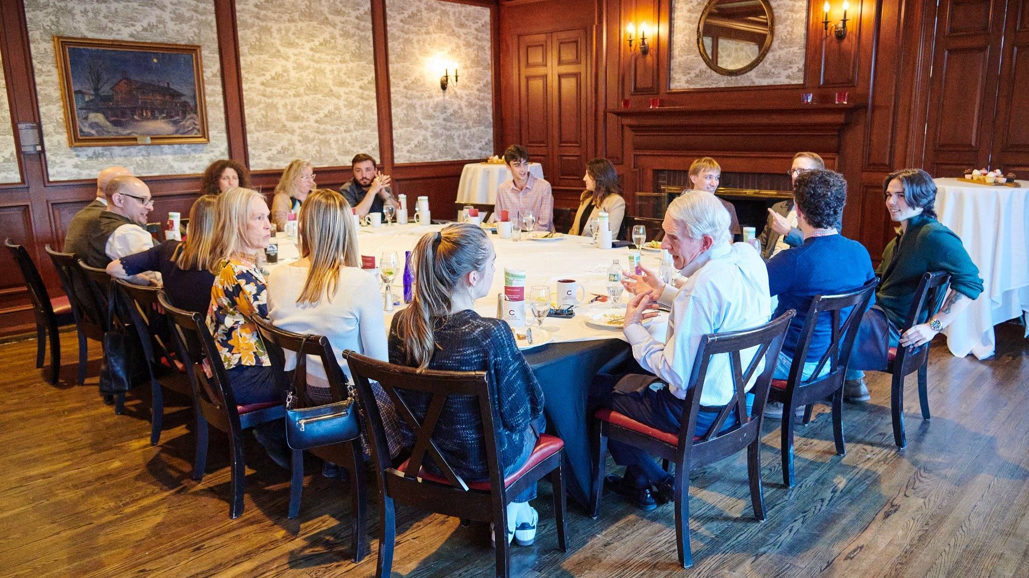 The 2024 James Madison Summer fellows attended a dinner April 22 with their faculty sponsors, the outgoing 2023 fellows, and members of the Center for Freedom and Western Civilization’s forums and External Advisory Board members at the Colgate Inn.