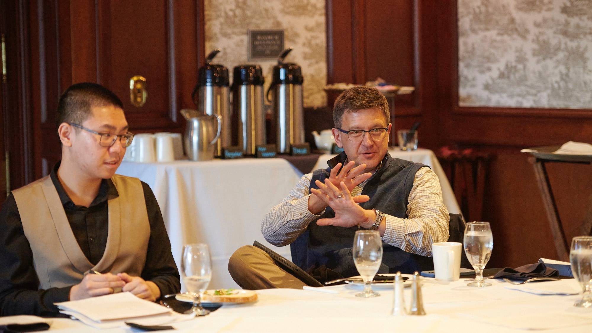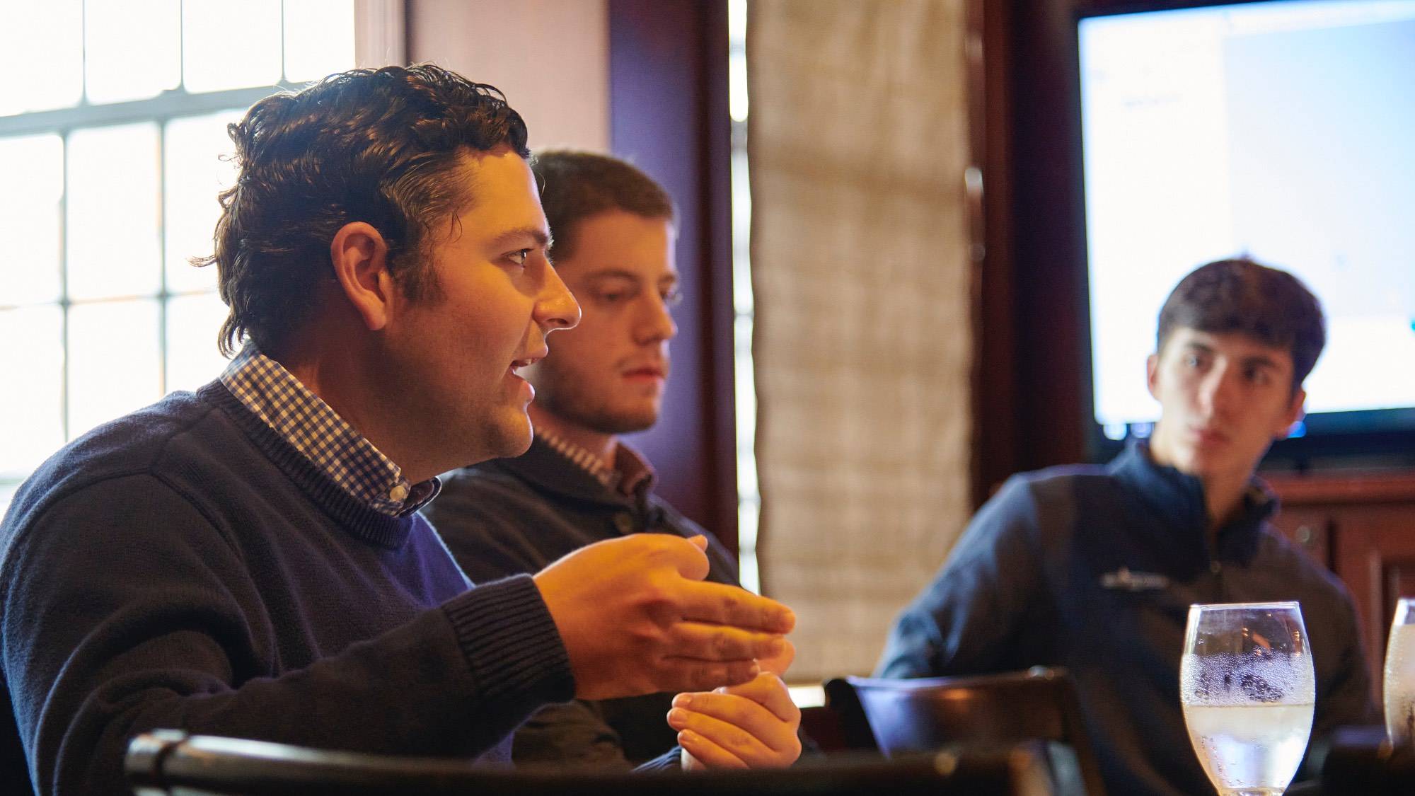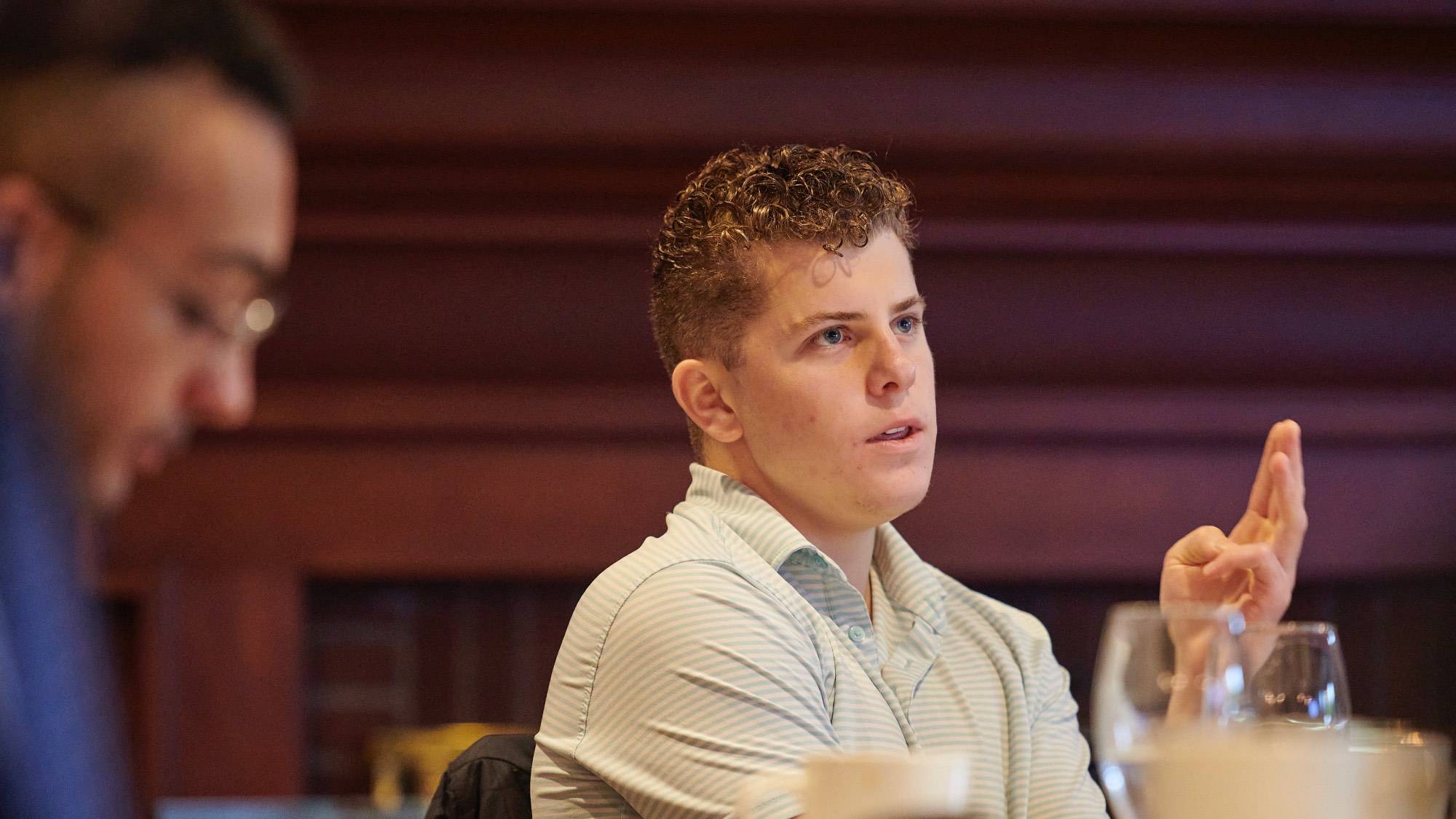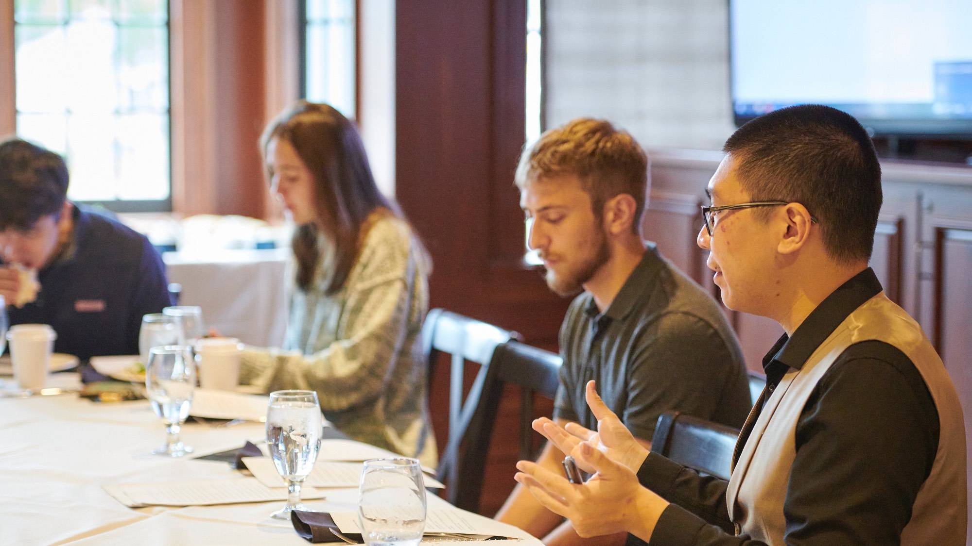 The 2023 Summer Fellows presented their summer research projects at a reception at the Colgate Inn on Oct. 14, 2023. Robert Kraynak, Professor of Political Science and co-director of the Center for Freedom and Western Civilization, hosted and moderated the event.