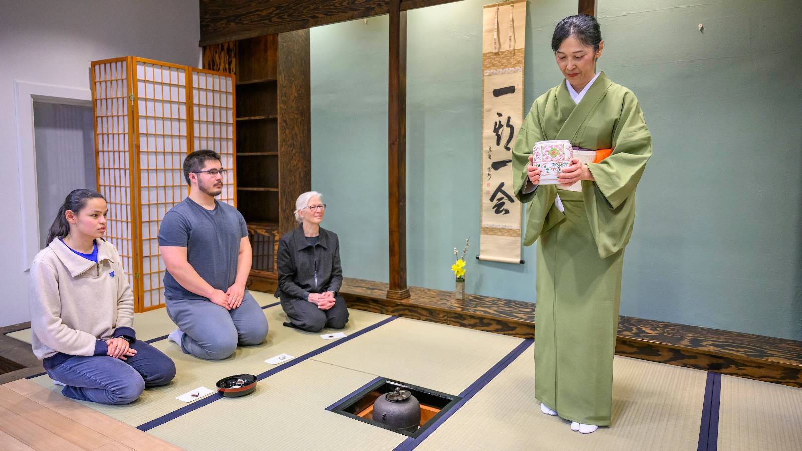 Language and culture are closely intertwined. While you study language, you'll have opportunities to delve into cultural practices like those during this Japanese tea ceremony demonstration.