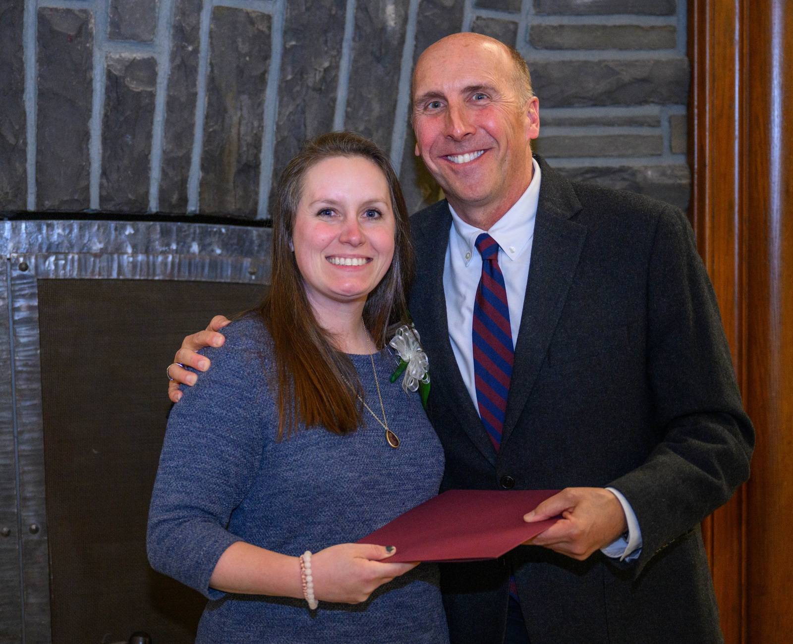 Staff members gathered in the Hall of Presidents for a cocktail hour and dinner. Christopher Wells, vice president for administration, welcomed the guests and President Casey gave remarks. The awards were presented by Lori Chlad, associate vice president of human resources, who retired at the end of April after 42 years of service.