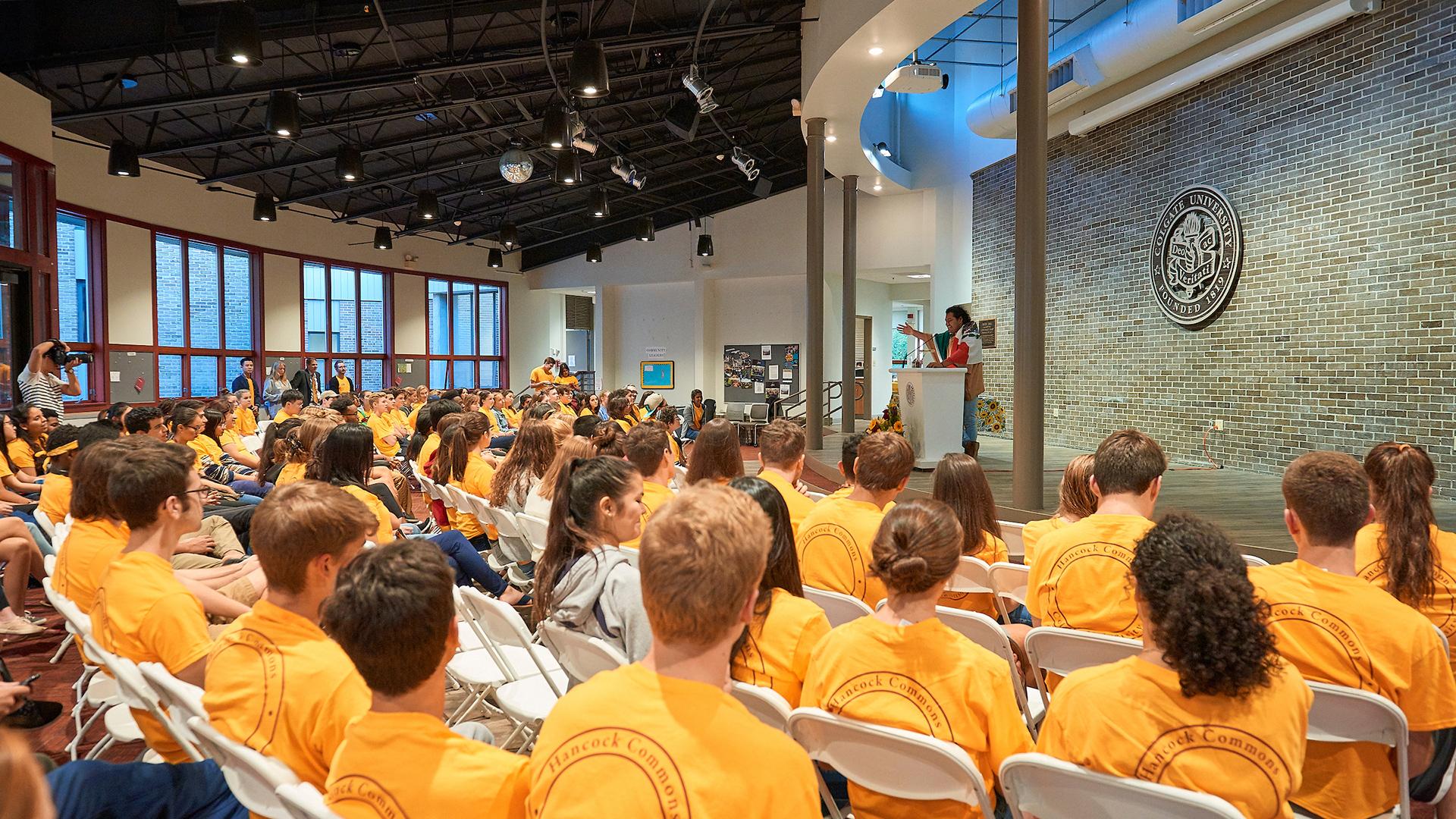 The sense of community that begins in student/faculty dialogue and continues in the residential college is furthered by Colgate's general education program. The faculty at Colgate are deeply committed to the idea that the common experience of a shared core curriculum provides the foundation for dialogue both in the classroom and in campus residences. Students and faculty engage those persistent questions and problems that are general to human life as well as new questions raised by technological developments and the proliferation of knowledge. General education at Colgate focuses on questions that transcend disciplinary interests and lie at the intersection of the social, political, economic, and philosophical transformations that have marked the 20th century.