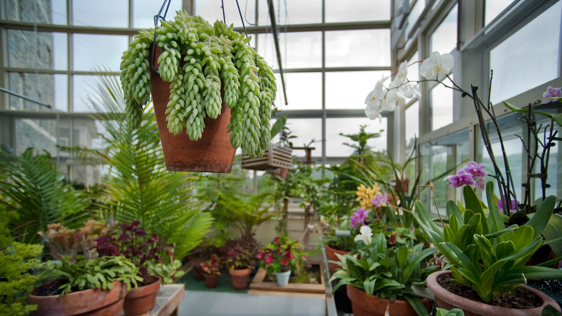 The greenhouse is located in the Ho Science Center. It features: