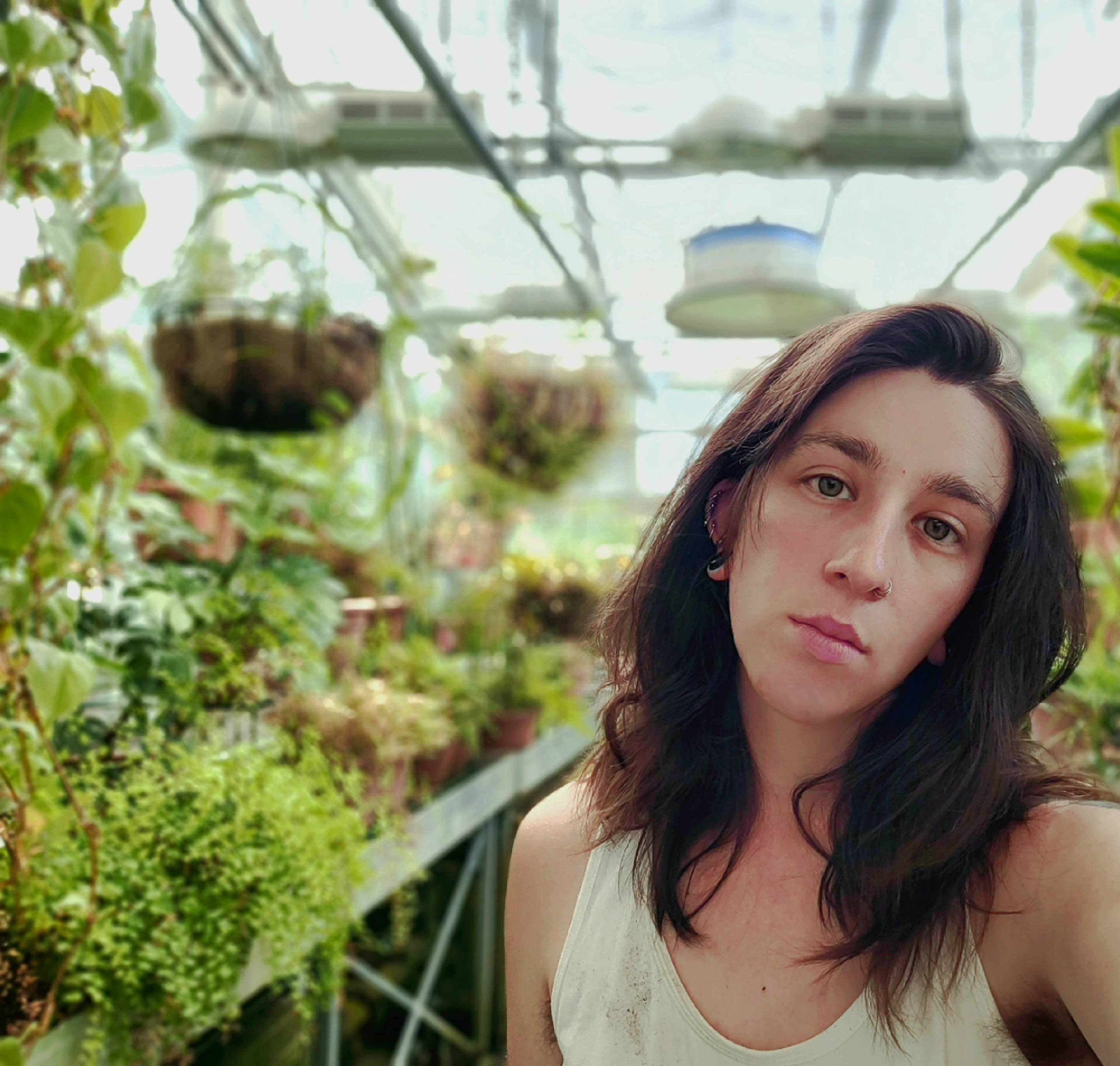 Sara Dougherty (she/they), greenhouse superintendent, works to maintain the university's conservatory collection and research plants. She also takes lead on managing the greenhouse work-study team and oversees all greenhouse operations.