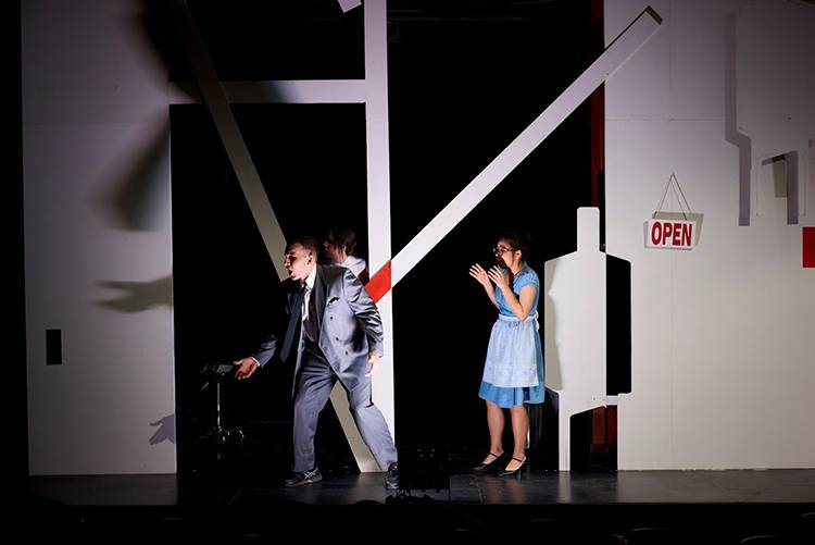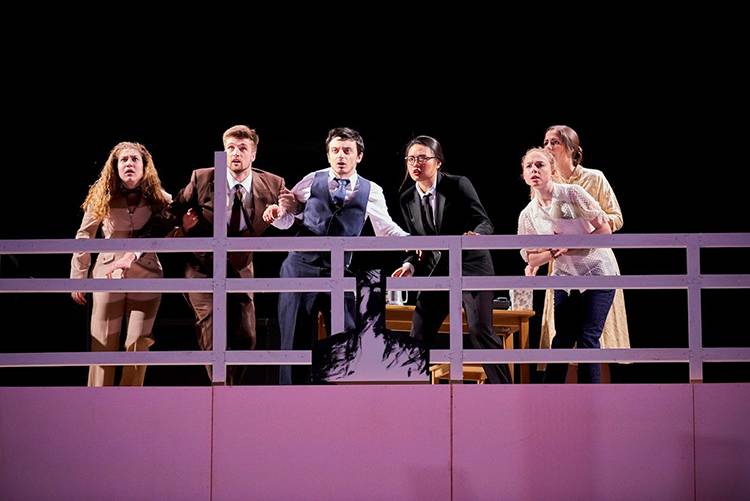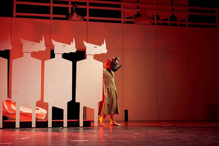 All is well until a rhinoceros, or maybe two, appear in their midst. Regular citizens seduced by the power of brute force, pressured by the energy of the crowds and swept away by the frenzy of mindlessness gradually give in to Rhinoceritis, the strange epidemic that turns man into beast. Only one of them is eventually left to uphold the values of humanity.