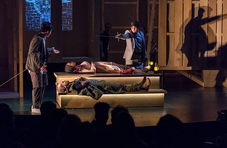Directed by April Sweeney; scenic design by Miranda K. Hardy; lighting design by Cha See; sound and video design by Eric Magnus; fights by Dan Renkin; special effects by Stephanie Cox-Williams; stagemanaged by Haoqi Xi; and technical direction by Joel Morain.