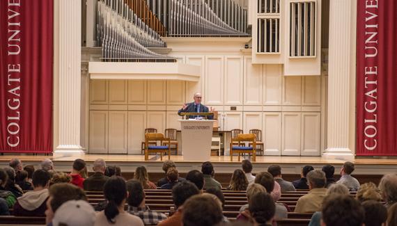 • As Alan Dershowitz took to the Colgate Memorial Chapel stage on Monday evening for his lecture, “Civil Liberties in the Age of Trump,” about 20 students in the audience stood up and turned their backs in peaceful protest. It was a moment of First Amendment exercise that the target, a controversial scholar of constitutional law […]