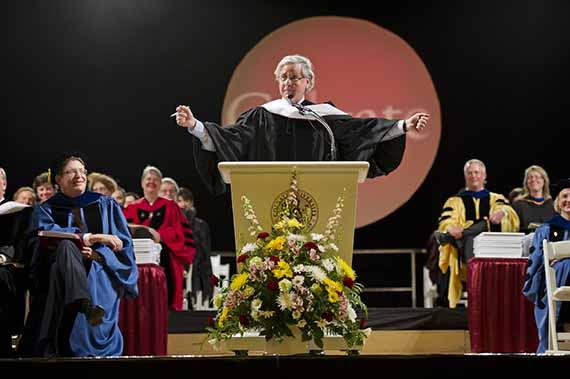 • Students talking under the stands at Andy Kerr Stadium before commencement 2015