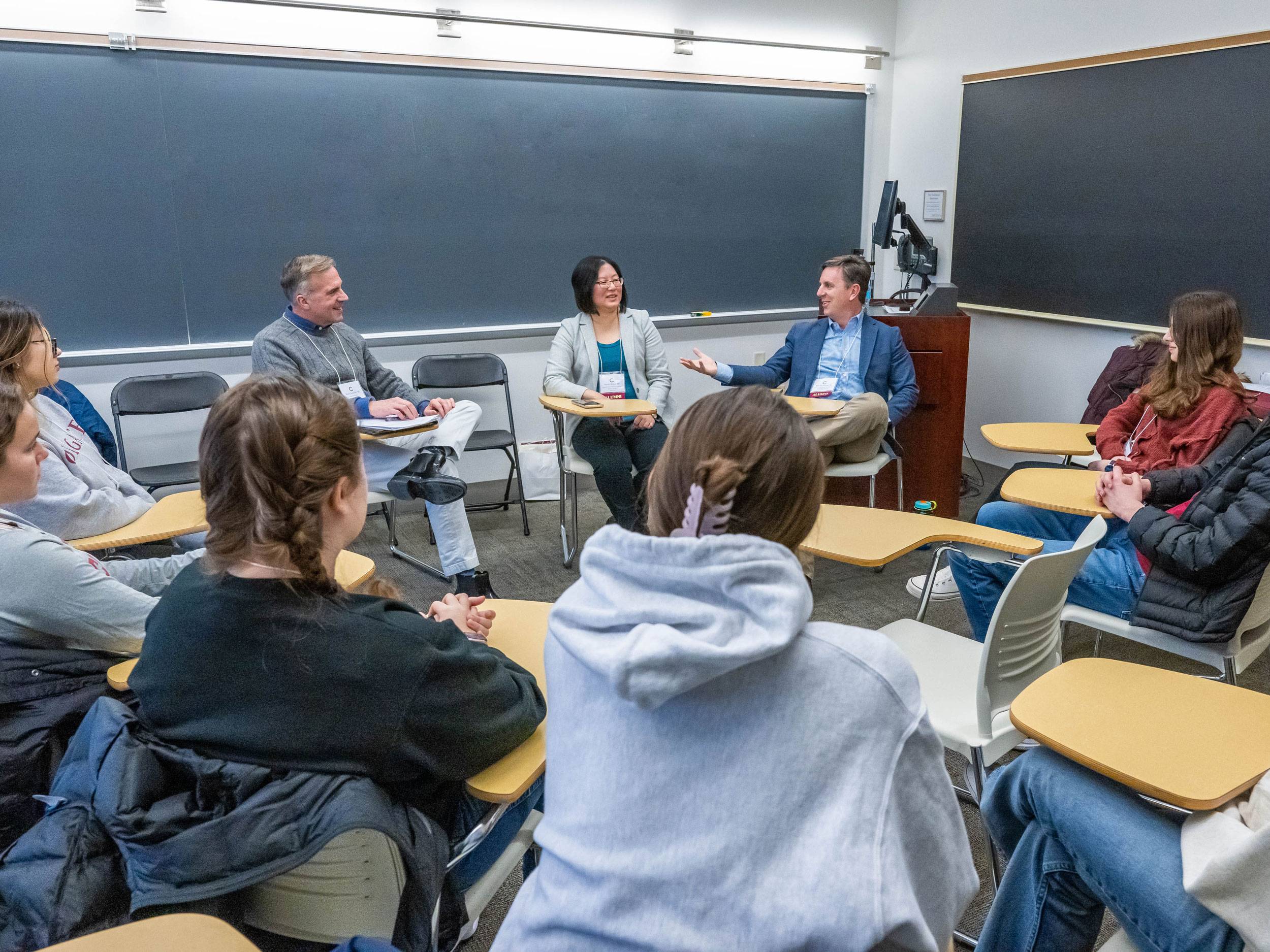 More than 140 Colgate alumni, representing household names such as Google, Tesla, and Spotify, proved her point in small group and panel settings. Panels covered 18 professions, such as finance, applied sciences, and law. Chris Torrel ’90, an environmental consultant featured on the sustainability panel, urged students to remain calm when facing professional uncertainty and remember what they can control.