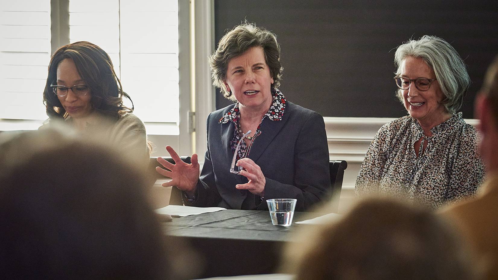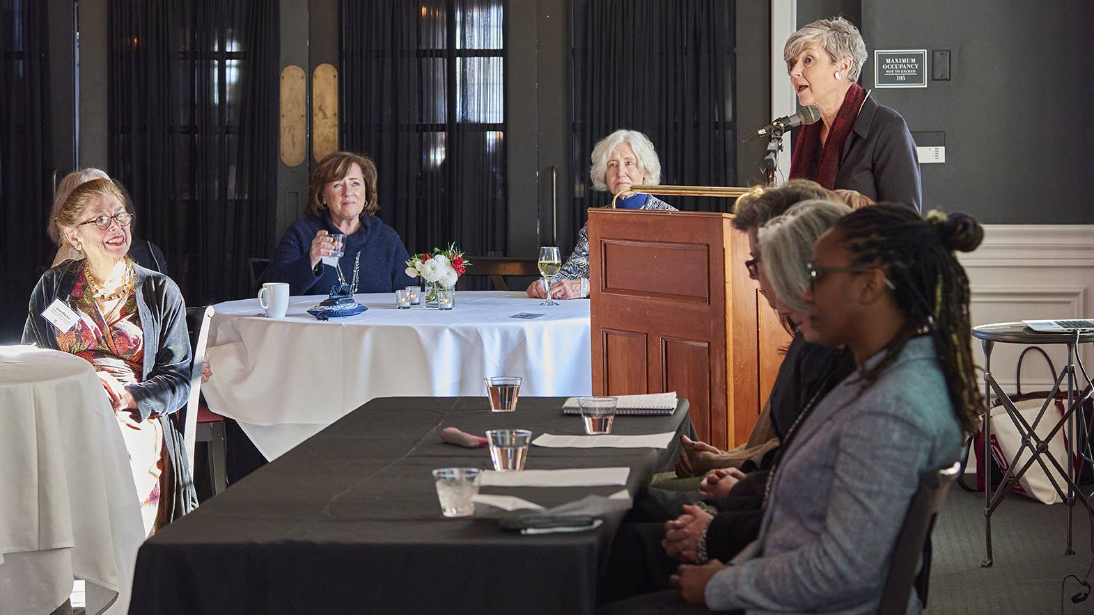 Members of the Colgate community also gathered to honor Thomas A. Bartlett Chair and Professor of English Emerita Jane Pinchin for her leadership at the University, particularly during the early years of coeducation. President Brian W. Casey and Kraly offered opening remarks before Pinchin joined four faculty members in discussing their experiences as women at Colgate and their aspirations for the University’s future.